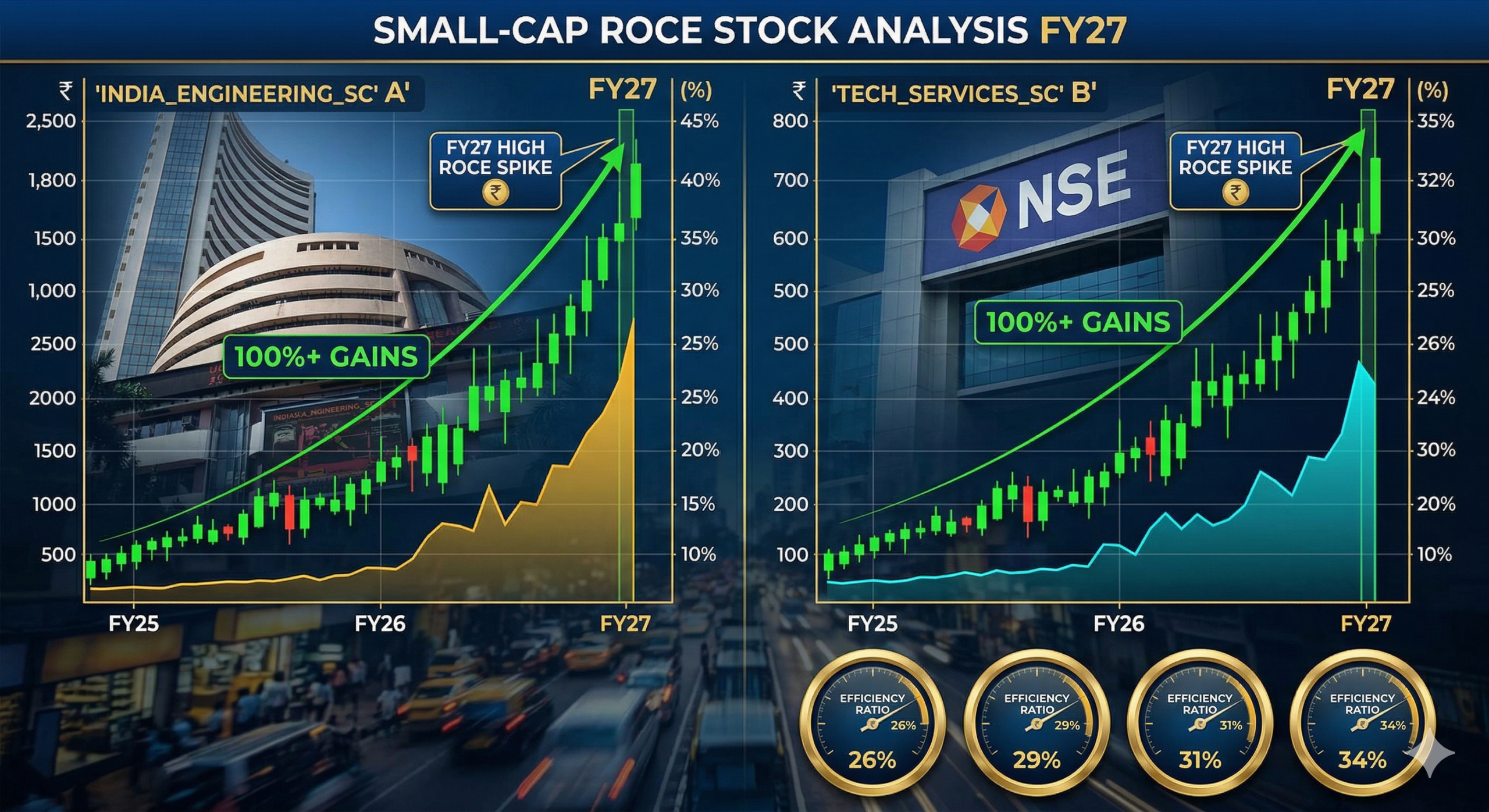Small-cap ROCE stocks FY27 are capturing smart money attention as Indian markets transition from liquidity-driven speculation to fundamental quality. These two standout performers delivered over 100% returns in the past year while maintaining exceptional Return on Capital Employed (ROCE), proving management allocates capital with superior efficiency. Investors prioritizing ROCE alongside price momentum gain early exposure to sustainable compounders before broader market recognition.